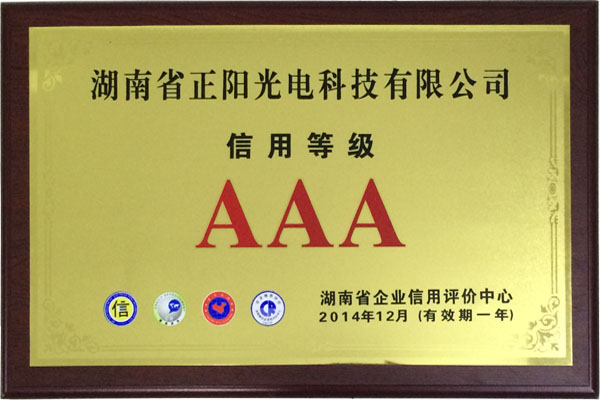 信用等級(jí)AAA證書